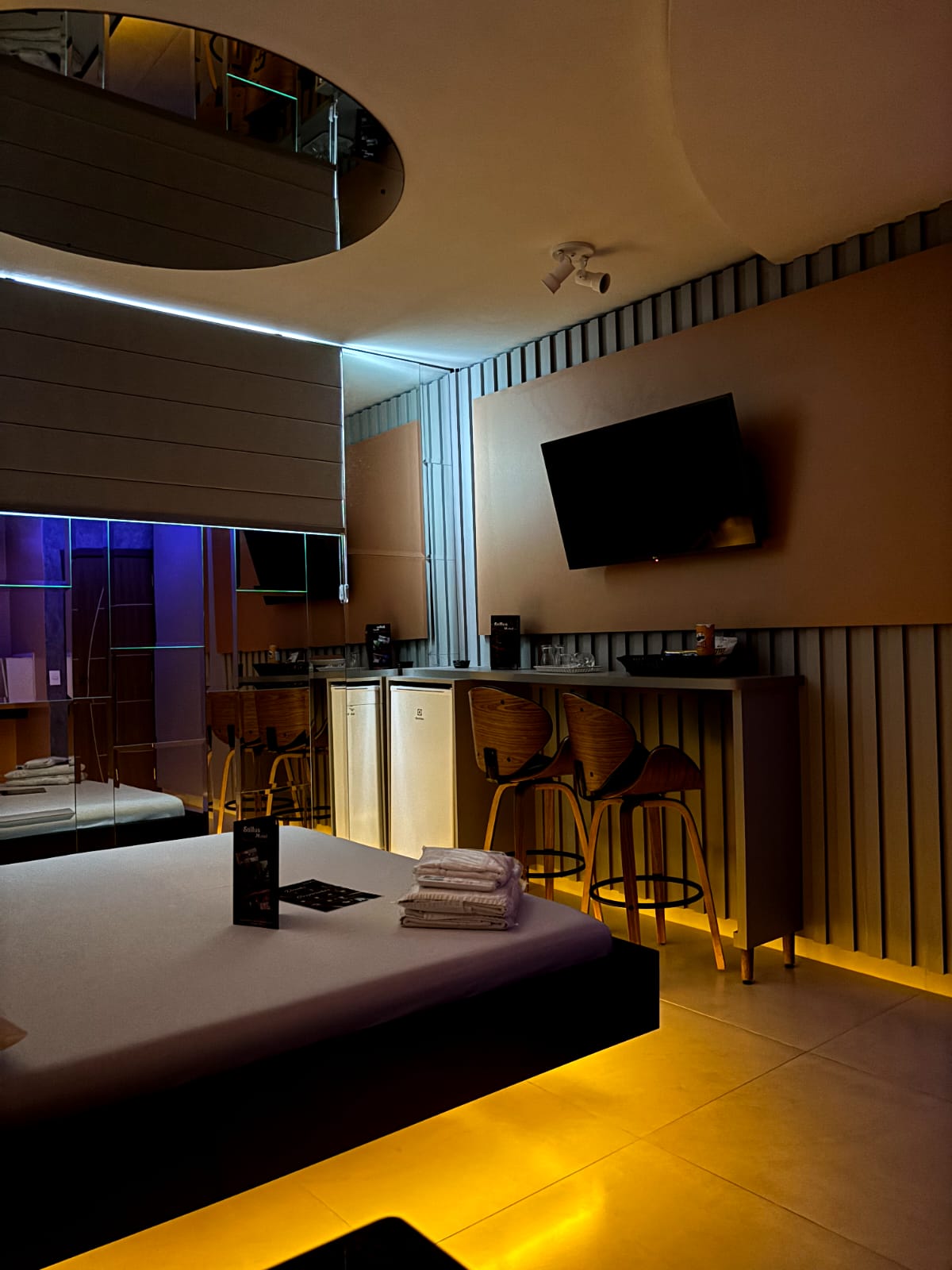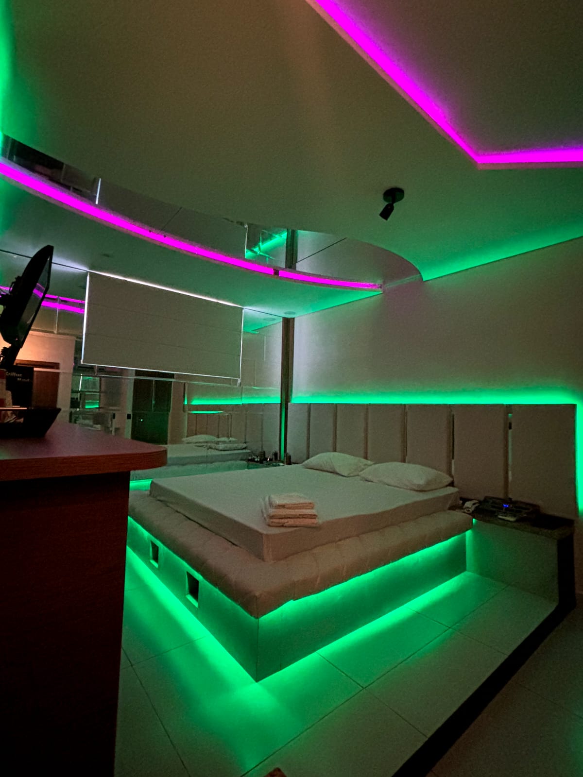 Ar Condicionado, Som, TV à Cabo, Ducha Relaxante, Garagem Privativa e Frigobar